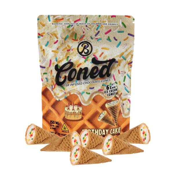 Entdecken Sie den festlichen Geschmack von Baked Bags Coned Birthday Cake Edibles – jeder Kegel enthält 100mg Delta-8 THC für eine sanfte, aber starke Wirkung. Jetzt kaufen und Premium-Qualität erleben!