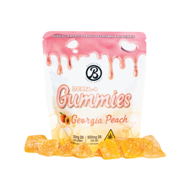 Lieben Sie süße, entspannende Edibles? Bestellen Sie jetzt Baked Bags Delta-8 THC Georgia Peach Gummis und genießen Sie Geschmack & Wohlbefinden in einem!