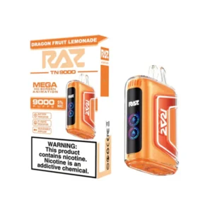 Der Raz TN9000 gehört zu den beliebtesten Einweg-Vapes auf dem Markt. Mit einstellbarem Luftstrom und einer großen Auswahl an Aromen können Sie mühelos das perfekte Ergebnis finden. Entdecken Sie unvergleichliche Geschmackserlebnisse mit den Raz Vape 9000 Puffs, die je nach Ihrer bevorzugten Einstellung entweder luftige direkte Lungenzüge oder ein enges MTL-Dampferlebnis bieten. Das Gerät bietet einzigartige Dessertaromen und beliebte Frucht-Eis-Kombinationen und liefert dank seiner fortschrittlichen Mesh-Spule von Anfang bis Ende einen gleichbleibenden Geschmack. Als echter Smart Vape ist der Raz Vape TN9000 mit einem 0,96″-HD-Bildschirm ausgestattet, der den E-Liquid-Füllstand und die Akkulaufzeit überwacht. Mit einem Nikotingehalt von 5 Prozent und einer E-Liquid-Kapazität von 12 ml bietet jeder Raz TN9000 eine echte Zugzahl von 9000.